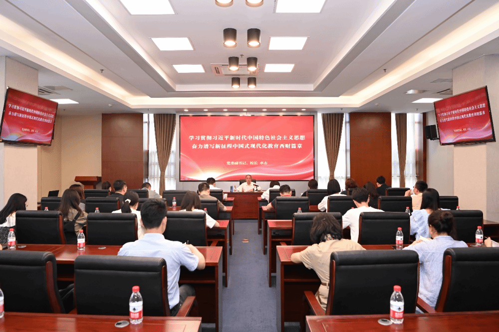 卓志指出,要全面落实实践要求、落地生根。学思想的落脚点在于学思践悟、融会贯通,要以全面贯彻落实习近平总书记关于教育的重要论述特别是关于建设教育强国的重要论述为抓手,着力回答好“强国建设、教育何为”“教育强国、西财何为”等重大命题。要深刻把握经济高质量发展、科技革命、教育变革的迫切要求,瞄准更好建构中国自主知识体系、支撑高水平科技自立自强和培养国家急需人才,全面推动“新财经”战略升级,着力推进一流学科培优、财经科技创新、人才引领支撑,推动以高等教育为龙头的高质量教育体系建设,加快建设财经特色鲜明的世界一流大学,奋力写好新征程中国式现代化教育西财篇章。