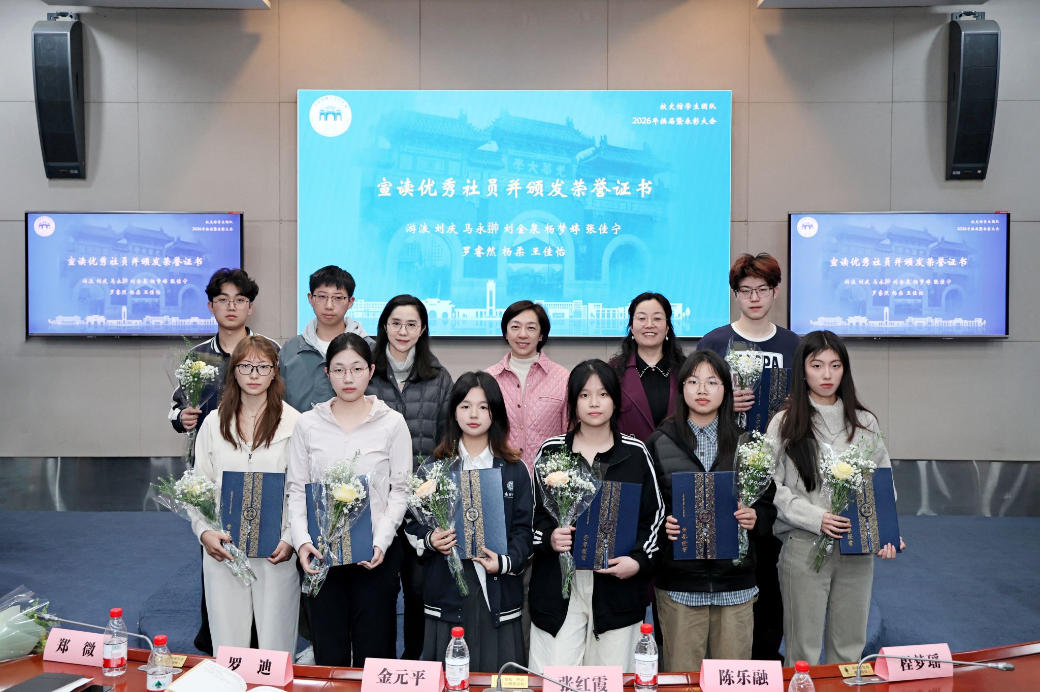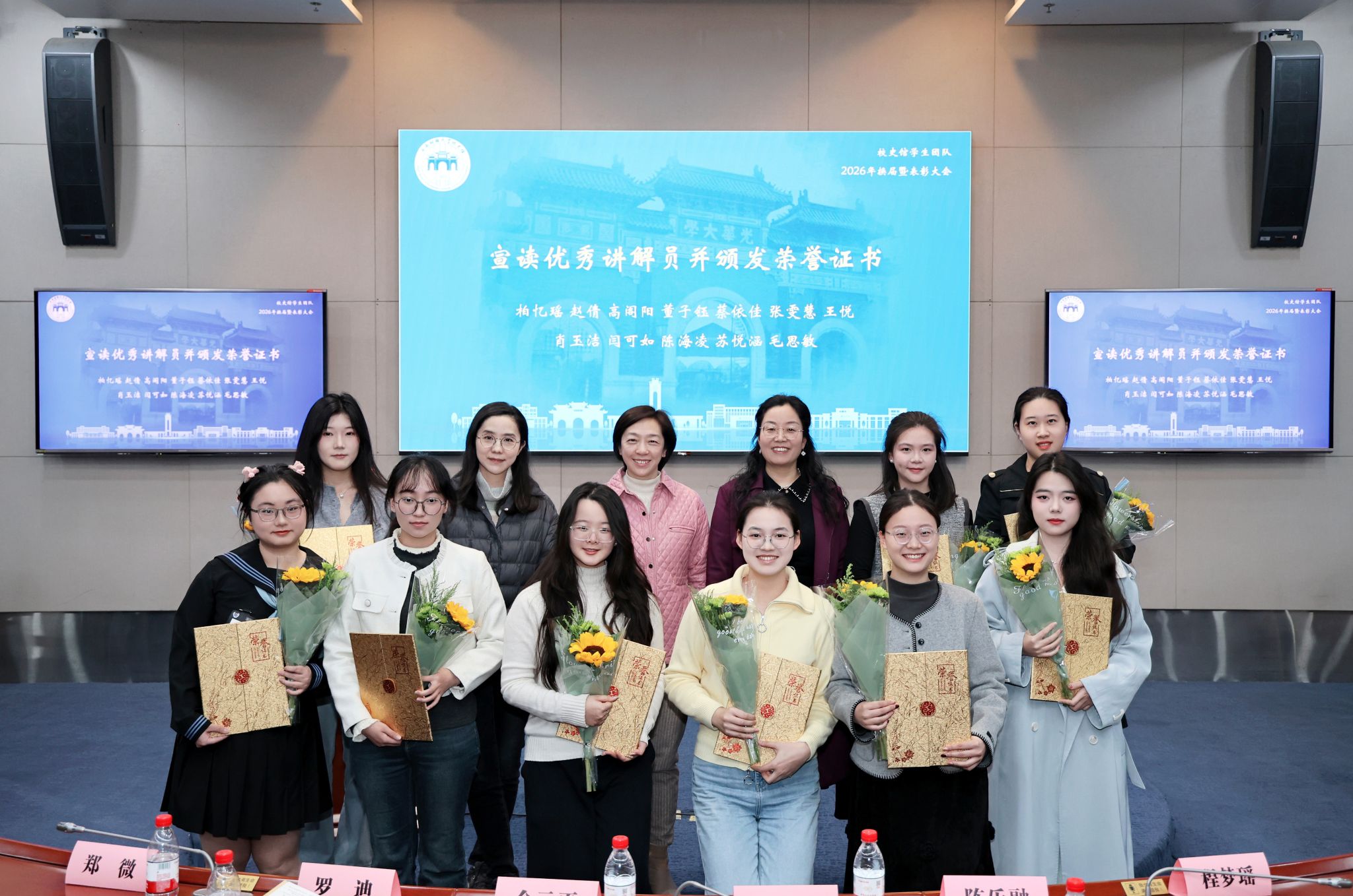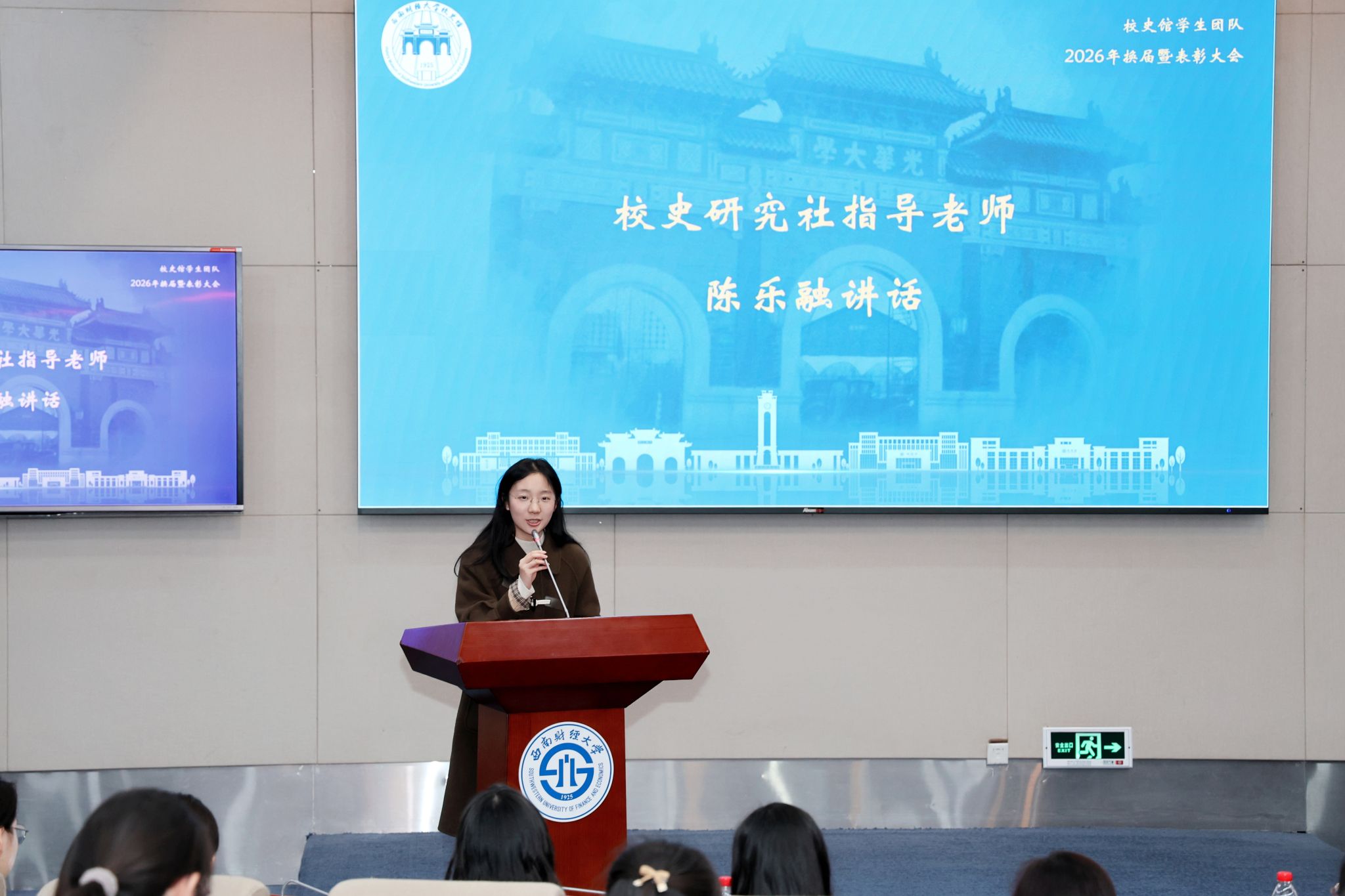 校史馆学生讲解团指导老师郑微、校史研究社指导老师陈乐融先后发言,她们回顾了过去一年学生团队在讲解接待、校史传播、文化育人等方面取得的丰硕成果,充分肯定了同学们在百年校庆后首个完整学年中所展现出的专业素养与责任担当,勉励新一届成员接续奋斗,让校史故事在青春讲述中焕发新的生机。