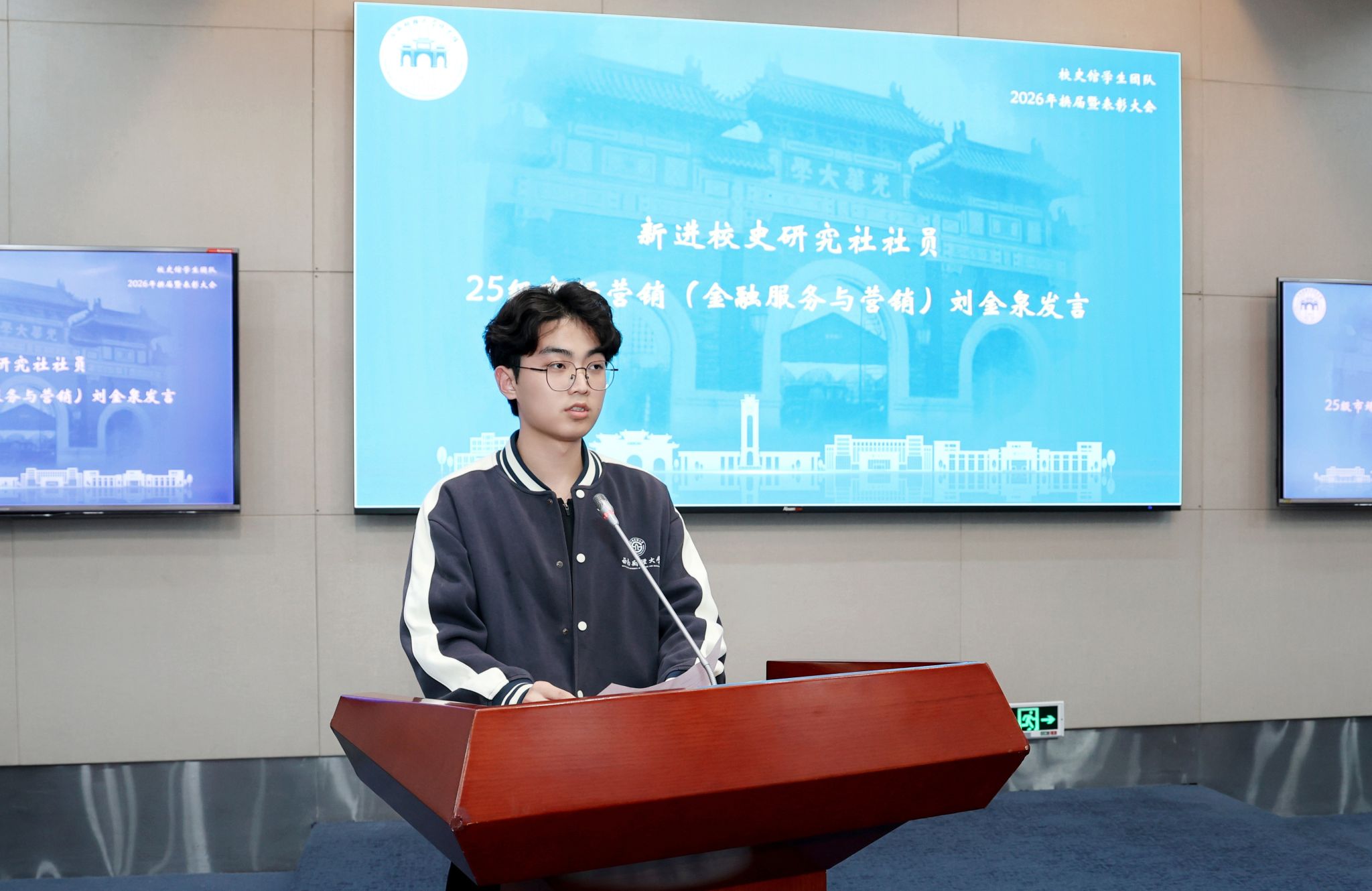 新进校史研究社社员、25级金融服务与营销专业刘金泉也分享了加入研究社的初心与期待。